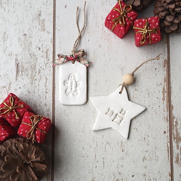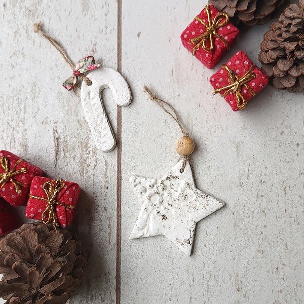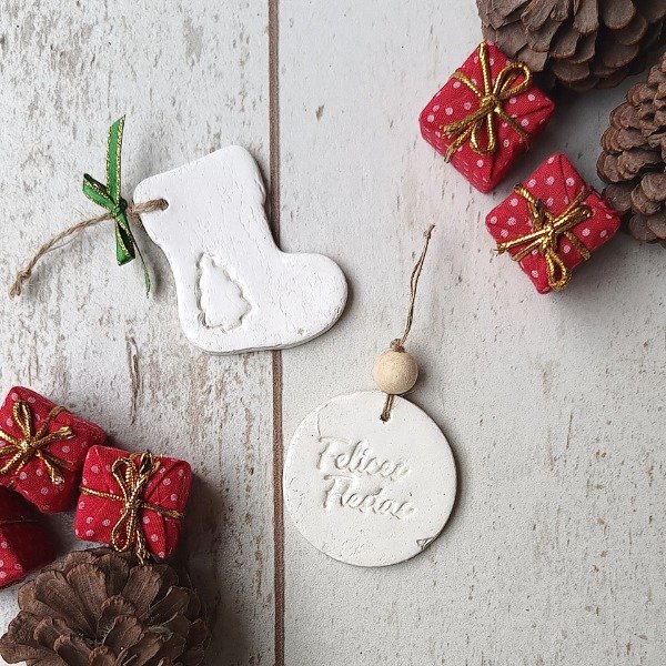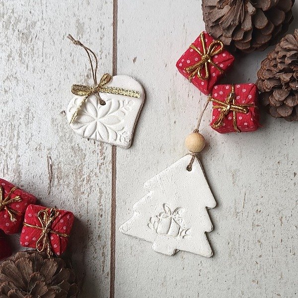 Set de 7 piezas realizadas en resina cerámica, ideales para colgar en el arbolito de Navidad.