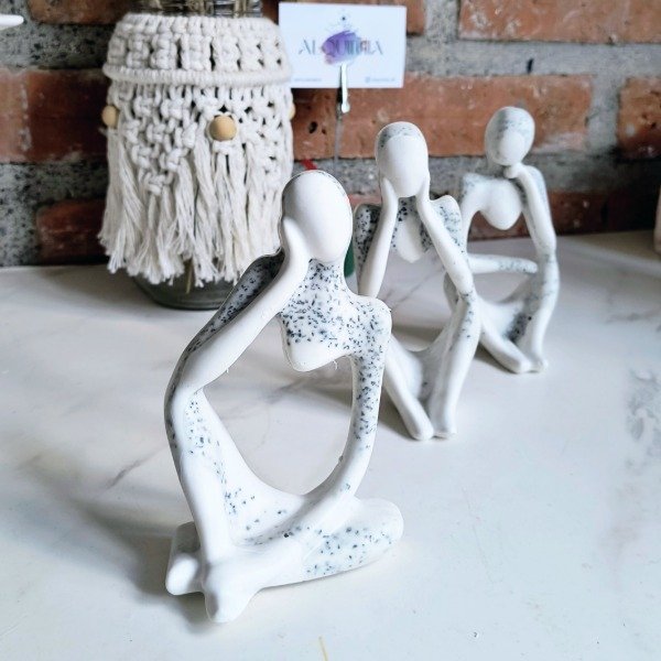 Trio de esculturas minimalistas en resina cerámica, ideales para decorar tus espacios con elegancia y originalidad.